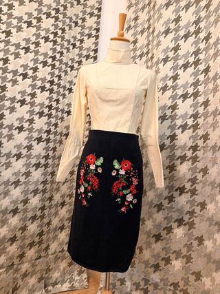 Falda Desigual Negra Bordada Flores