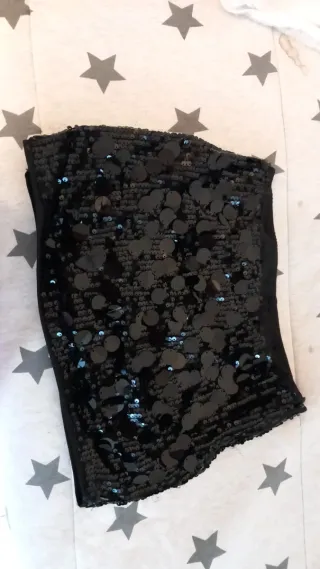 Falda corta con un diseño llamativo de lentejuelas. - Acabado brillante plateado y negro. - nueva con etiqueta