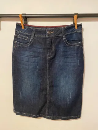 Falda vaquera Yessica C&A Talla 36 azul marino Material: 98% algodón y 2% elastano