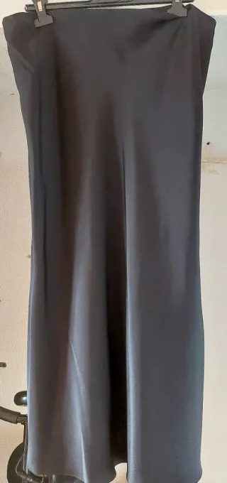 Falda larga satén Zara negra T.XL