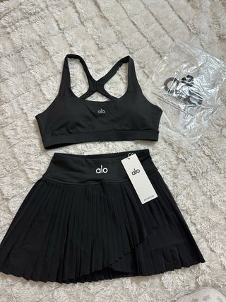 Falda plisada de tenis de Alo Yoga. Con etiqueta y su bolsa. Talla S. Dispongo de M. - Diseño con capa superpuesta. - Cintura elástica. - Logo de Alo Yoga en la cintura. - Bolsillo interior para la pelota de tenis.
