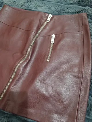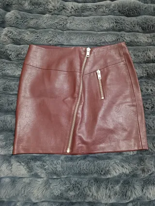 Falda cuero granate Stradivarius Talla L 40