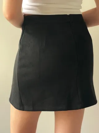 Falda de cuero con un diseño moderno y versátil. - Material: Cuero - Color: Negro