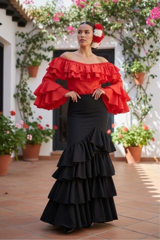 Falda larga flamenca negra
