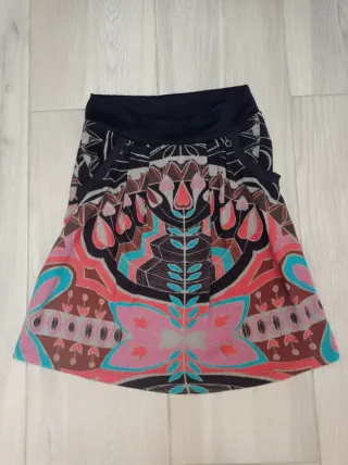 Falda de la marca Desigual con un diseño vibrante y original. Perfecta para añadir un toque de color a tu armario. - Estampado geométrico bordado. - Cierre de cremallera lateral. - Tejido de alta calidad.