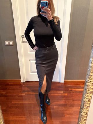 Falda midi Zara negra