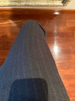 Elegante traje de chaqueta y falda en tono gris plateado. Solo ha sido usado una vez. Está en perfectas condiciones. Ideal para celebraciones primavera/verano. - Chaqueta con solapas clásicas. - Falda recta a juego.
