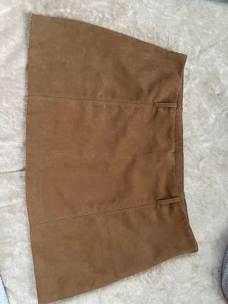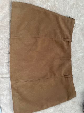 Falda de corte recto con un suave acabado efecto ante. - Diseño de tres paneles. - Trabillas en la cintura.