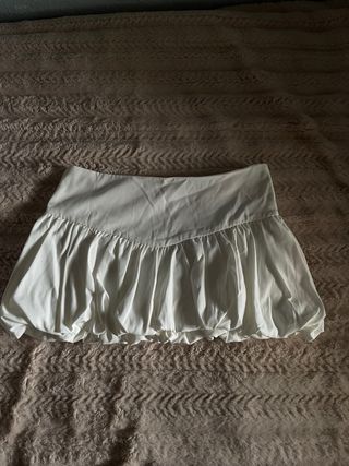 Vendo falda blanca de tejido ligero, con diseño tipo globo y cintura ancha que queda muy favorecedora. Está en muy buen estado, sin manchas ni desperfectos. Ideal para looks de verano, eventos, cenas, fiestas o outfits elegantes y casuales.