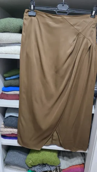 Falda de Massimo Dutti con un diseño elegante y moderno. - Tejido satinado con caída. - Detalle de drapeado asimétrico. - Largo midi.