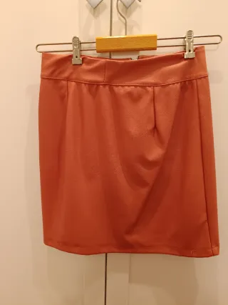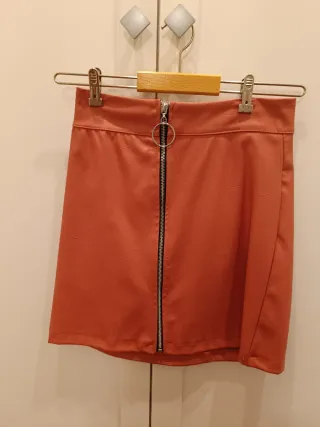 Falda de piel sintética con cremallera frontal. Es una prenda nueva a estrenar. - Cremallera dorada. - Forro interior.