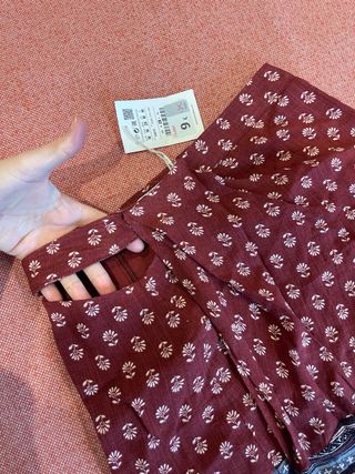 Falda tipo pareo granate estampada. Tiene una apertura en un lateral. Sin estrenar ⚠️Es M pero talla como S