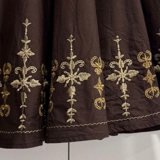 Talla M - Falda midi marrón bordado étnico/boho