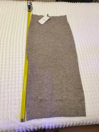 Falda de punto elástica en color beige. Su diseño se adapta a la figura. - Tejido suave y cómodo. - Cintura elástica para un mejor ajuste.
