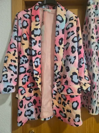 Conjunto blazer y falda estampado leopardo