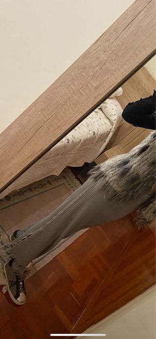 Falda larga Zara canalé gris