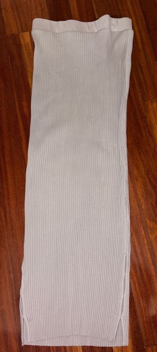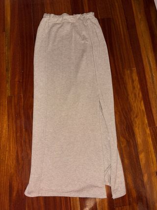 Falda larga de tejido suave en color beige. Presenta una abertura lateral que le da un toque moderno. Talla XS/S - Tejido de punto. - Cintura elástica. - Abertura lateral.