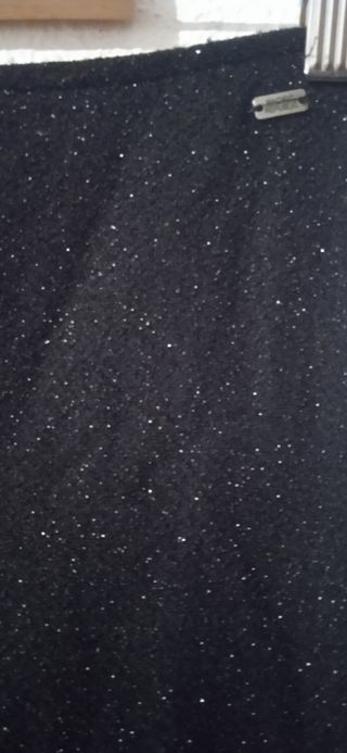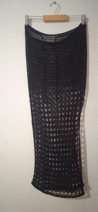 Elástica ,negra,con abertura hasta arriba y otra pequeña falda debajo