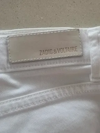 Falda de Zadig & Voltaire en color blanco. - Talla S / 36 / 8. - Diseño con bordado Girls can do anything en el bolsillo.