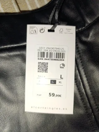 Falda de efecto piel con un diseño moderno y versátil. - Cierre frontal con cremallera. - Dos bolsillos delanteros. - Detalle de costuras.