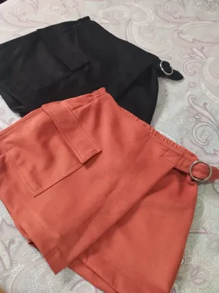 Set de 2 falda-pantalón, de la marca Bershka. Talla XS. Tejido de ante. Uno en color negro y otro en color caldera. Los 2 están nuevos, en perfecto estado.