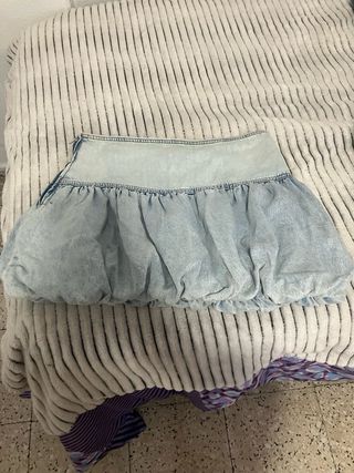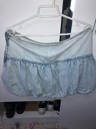 Falda vaquera con un diseño único y moderno. - Estilo globo. - Tiro alto. - Lavado claro.