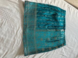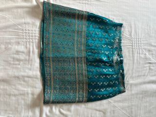 Falda larga de color dorado con un detalle de abertura. Usada muy poco - Diseño fruncido en la cintura. - Tejido suave y con caída.