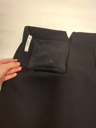Elegante falda negra entubada, largo chanel, talla 36. Excelente calidad, con forro interior, marca "Mango".Prenda de fondo de armario que va con todo. Con adorno en forma de "V" en el frente de la cinturilla. Perfecto estado.