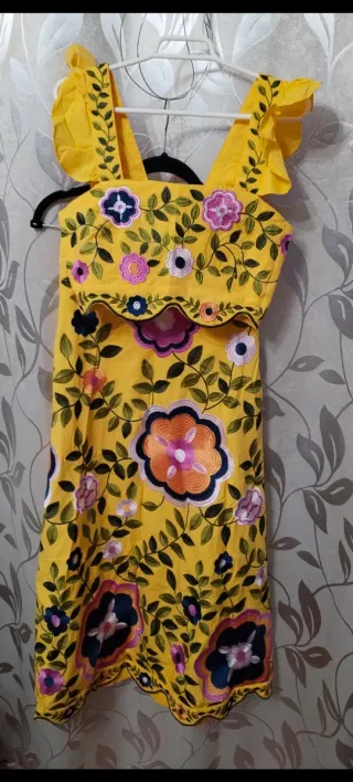 Conjunto de falda con detalles bordados y adornos.usado una vez los tirantes están metidos un poco pero se pueden sacar como se ve en la foto - Diseño con bordados rojos y dorados. - Adornos de conchas blancas. - Estilo bohemio y veraniego.