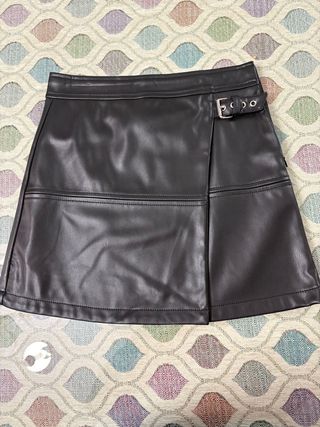 Minifalda de polipiel con detalle de cinturón. - Diseño envolvente. - Detalle de hebilla metálica. - Costuras decorativas.