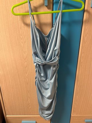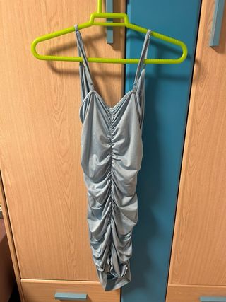 Vestido de tirantes con un diseño drapeado y fruncido en la falda. El escote es pronunciado y tiene un detalle de cremallera. - Tirantes finos ajustables. - Tejido elástico. - Diseño fruncido.