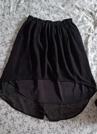 Falda elegante de color negro con un detalle de velo. - Diseño asimétrico. - Cintura elástica. - Tejido ligero y vaporoso.