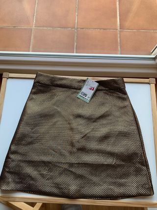 Falda de efecto piel en color marrón.ligeramente elástica ,talla M /L , - Diseño moderno y versátil. - Material sintético de alta calidad.
