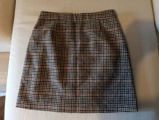 Falda de cuadros con un 34% lana. Forrada. Con cremallera delantera. Marca Vero moda. En perfecto estado. - Estampado de cuadros clásico. - Cremallera frontal para un cierre seguro y estilizado. - Bolsillos laterales prácticos con cierre de clip.