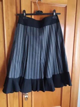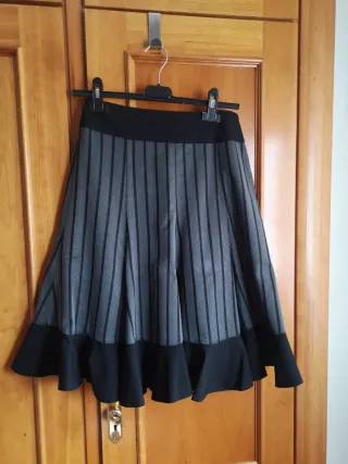 Falda de la marca Caroll con un diseño elegante y moderno. - Diseño de rayas verticales en gris y negro. - Volante en el bajo para un toque de estilo. - Con cremallera.