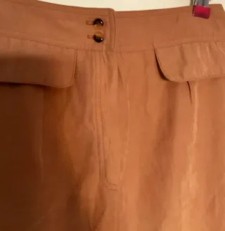 Falda de tela de color marron y otra azul - Diseño con cinturón ajustable en los laterales. - Cierre de botón y cremallera.