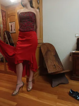 Conjunto Top y Falda Rojo Dorado