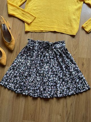Falda corta con estampado floral y cinturón. - Diseño plisado. - Cintura con goma - Estampado de flores de colores