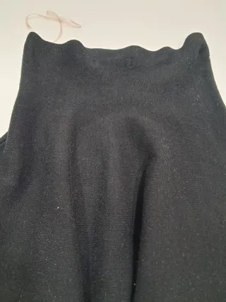 Elegante falda negra para mujer, con un diseño moderno y detalles únicos. - Corte ajustado. - Detalle de tejido brillante en la parte superior. - Sin mangas.
