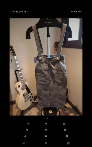 Falda vaquera con un diseño moderno y cómodo. - Tejido elástico para mayor confort. - Detalle de tirantes ajustables. - Cierre de botones en la parte frontal.