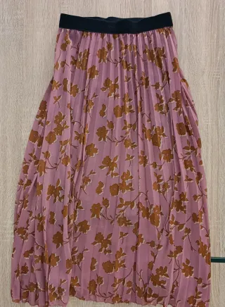 Falda larga con un bonito estampado floral en tonos rosas y marrones. La cintura es elástica para mayor comodidad. - Diseño plisado. - Cintura elástica.