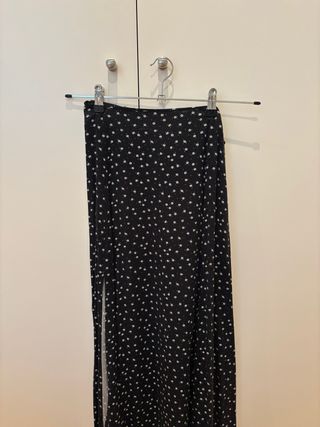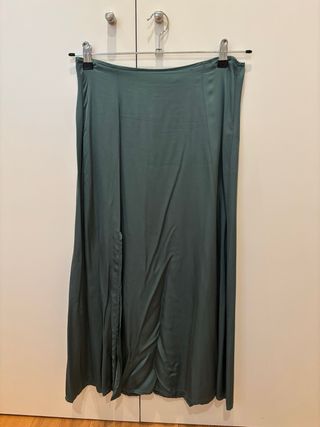 Falda larga de Stradivarius. - Diseño liso. - Cintura alta. - Abertura frontal.