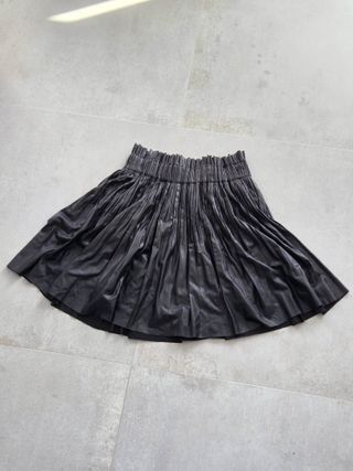 Medidas (cm): - Largo: 44 - Cintura: 31 (elástico) - Muslo: 23 (short interior) Falda pantalón corta de Zara en color negro con acabado efecto piel brillante. Un diseño plisado muy estiloso y versátil para cualquier ocasión. > Incluye pantalón interior para mayor comodidad. > Cintura elástica que se ajusta muy bien. > Material: 100% Poliuretano de gran calidad. En buen estado, como nueva, muy poco uso. Sin marcas ni desgaste.