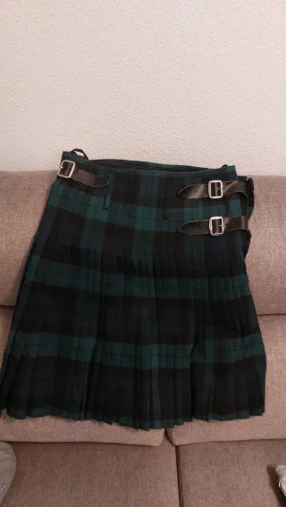 Falda de estilo escocés con diseño a cuadros, para adulto, talla M - Diseño a cuadros en tonos verde y negro. - Cierre con hebillas de polipiel. Da el pego, es comprada en Edimburgo y mucho mejor que las que venden para disfraces