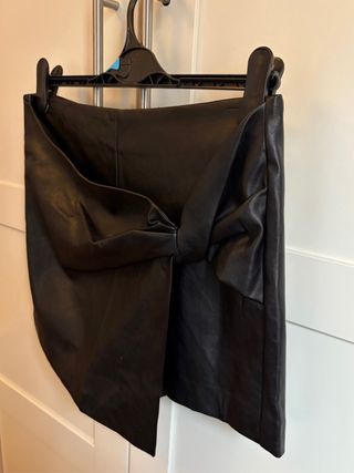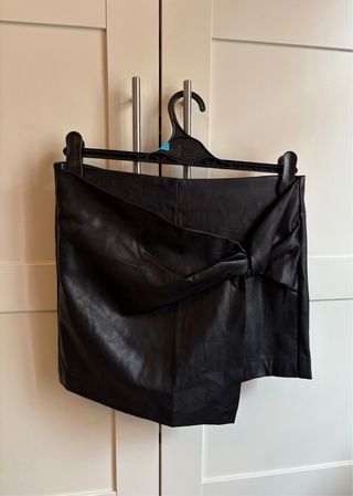 Falda pantalón Zara de efecto piel con un diseño moderno y elegante. - Sin uso. - Cierre con nudo frontal. - Corte asimétrico.