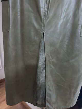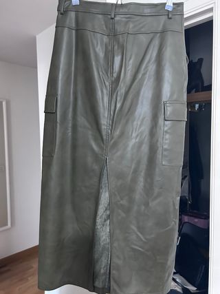 Falda midi efecto piel verde caqui de ZARA