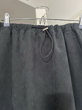 Falda midi de Zara en color gris. Presenta un diseño moderno y versátil. - Cintura elástica con cordón ajustable. - Tejido de algodón.