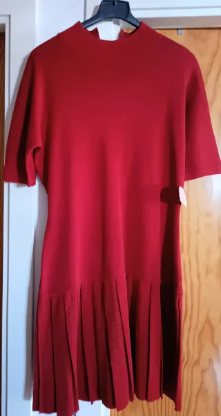 Vestido rojo de punto con falda plisada