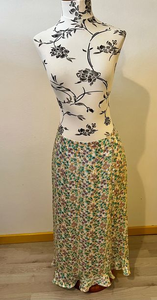 Falda midi satinada marca Zara floral talla XL