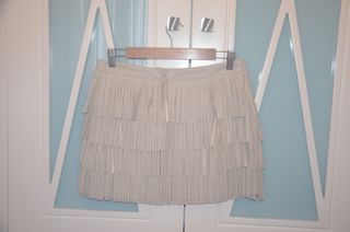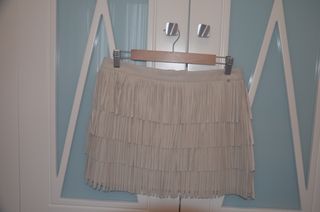 Falda en polipiel de la marca Brownie con diseño de flecos, muy bonito, color beige. Talla M. Se encuentra en buen estado, muy poco uso. Entrega en mano. Pago efectivo.